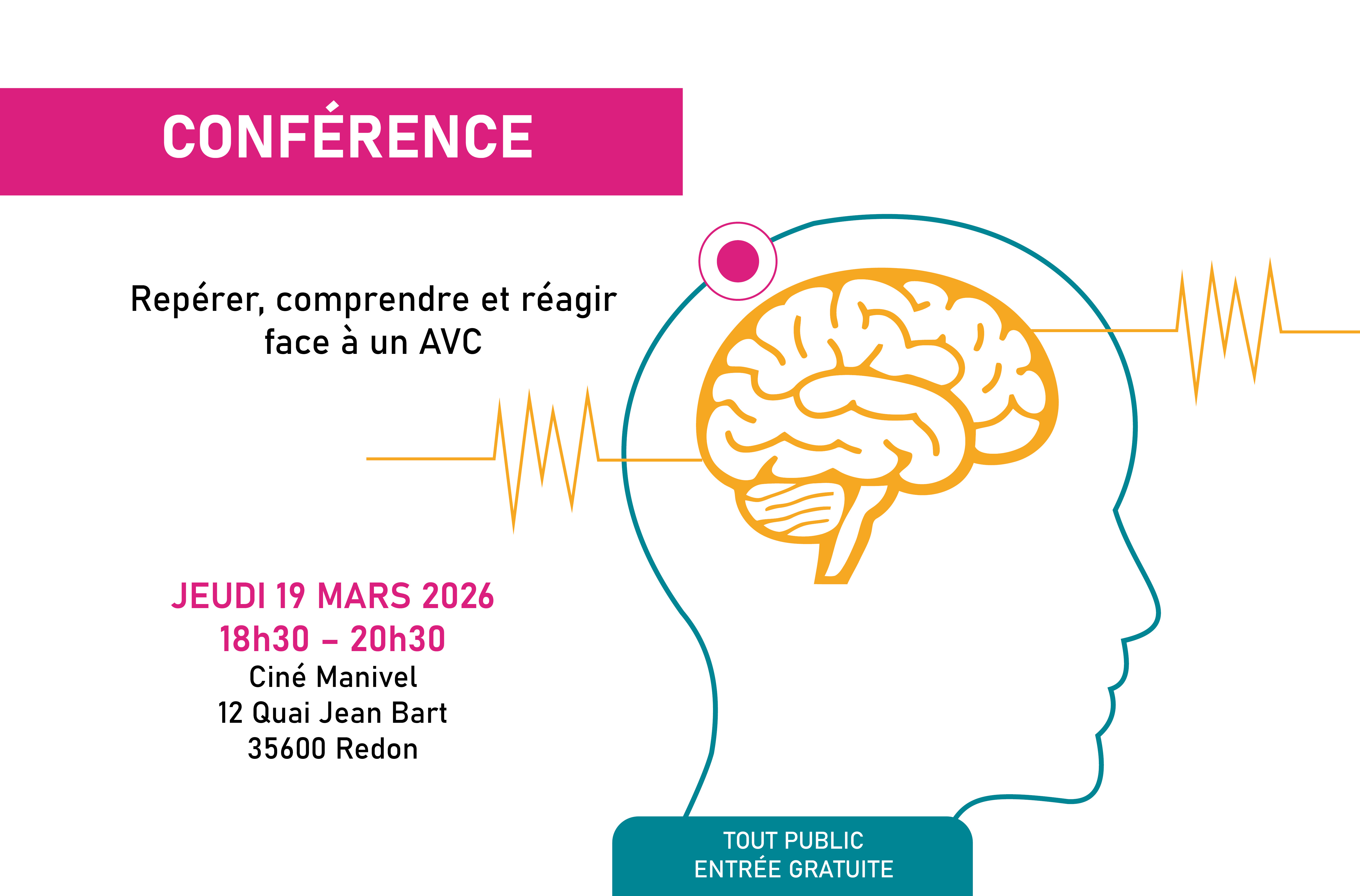 Venez apprendre à repérer les symptômes, comprendre les mécanismes d'un AVC et adopter les bons réflexes Jeudi 19 mars 2026 à 18h30 au Ciné Manivel à Redon.