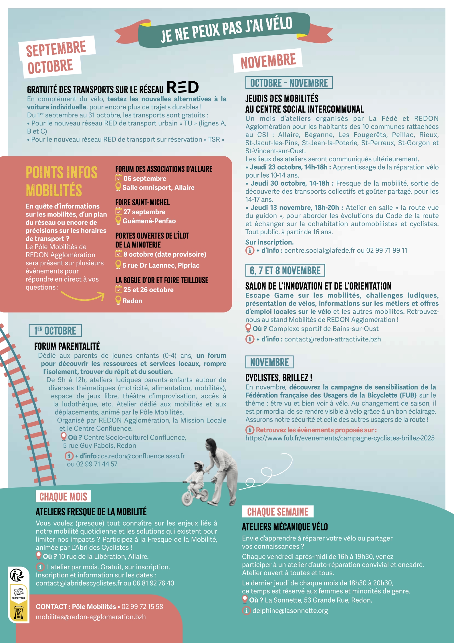 Trajets en train, service de location, points infos mobilités, gratuité du réseau RED jusqu'au 31 octobre, ateliers mécanique, Maison du vélo... Retrouvez les événements, infos pratiques et initiatives locales du moment !