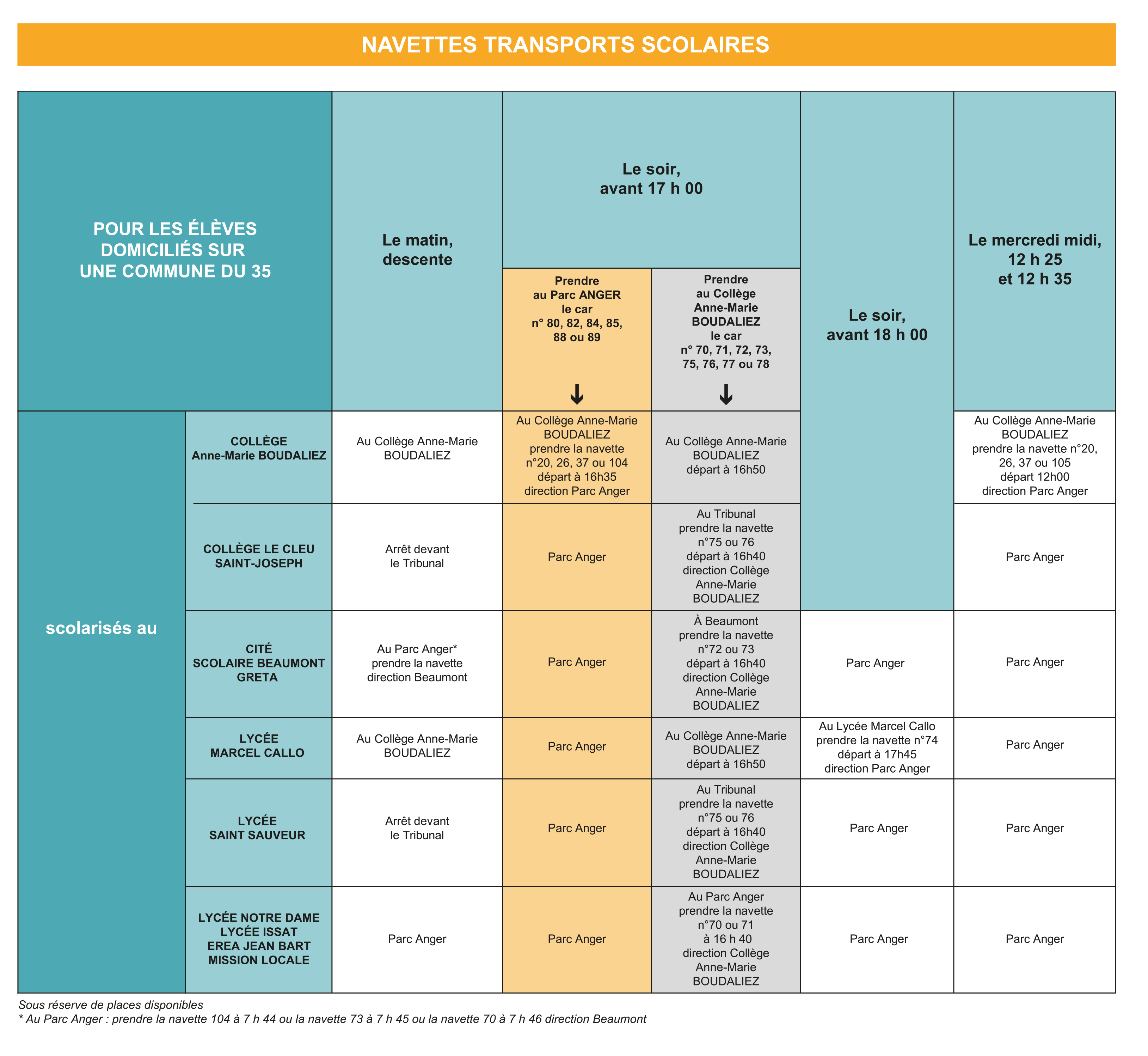 Des navettes sont disponibles pour les élèves scolarisés dans des établissements plus éloignés du lieu de départ ou d'arrivée.